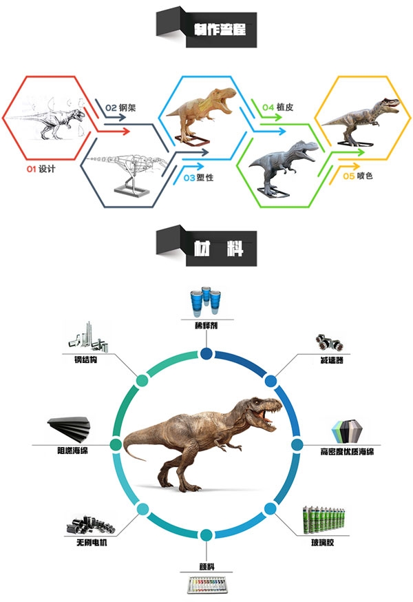 制作工艺:内部采用钢结构造型、直流电机控制动作、表皮采用高密度海绵,手工造型、刻模、外植胶皮、喷涂色彩,产品形象生动、逼真,动作灵活、自然,防水,防火,防冻,抗高温功效。