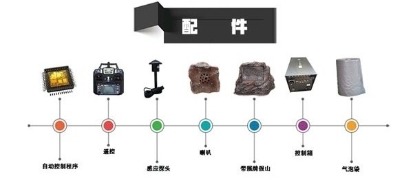 控制盒、假山配饰、音响、远程控制器和红外控制器、传感器、备用零部件