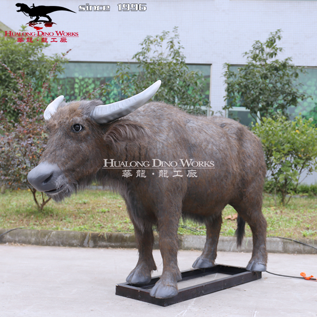 华龙科技匠心制作大型仿真电动机械硅胶基模仿真动物电动行走大水牛玩具模型