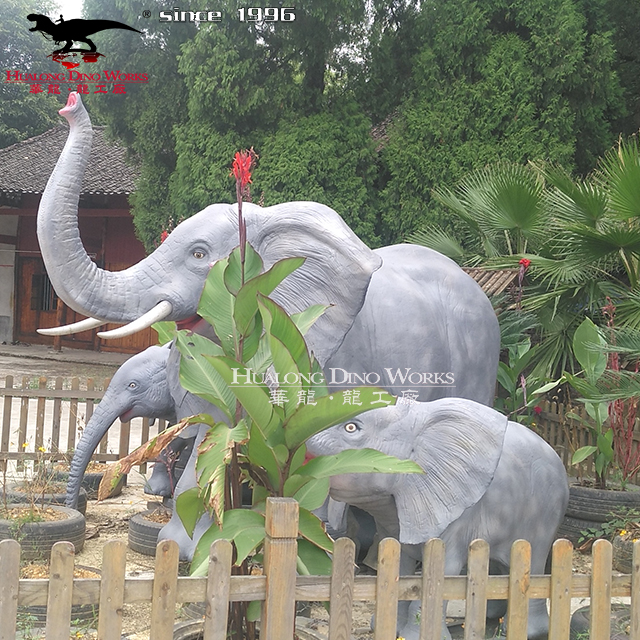 出口泰国的仿真硅胶机械电动大象一家亲。定制各类尺寸仿真动物硅胶装饰摆件,仿