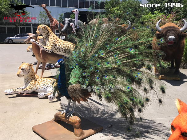 大型仿真孔雀机模制作-森林仿真动物主题巡展
