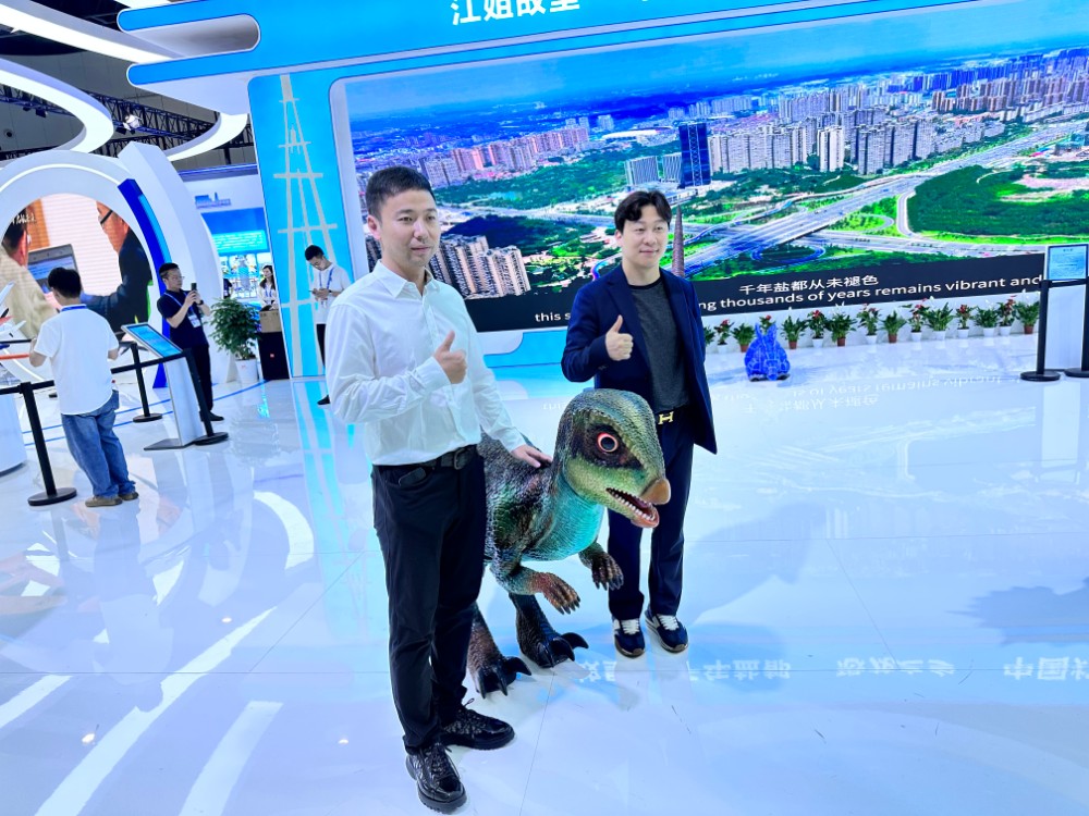 在展会现场,自贡华龙科技展出的双足智能仿真恐龙吸引了不少专业观众驻足。该产品能够实现平稳行走和简单的互动反应,适用于主题公园、博物馆、商业广场等多种场景。据现场工作人员介绍,这款产品攻克了仿生重心控制难题,目前已接到海外客户的咨询和意向订单。