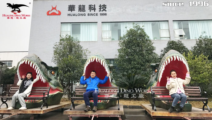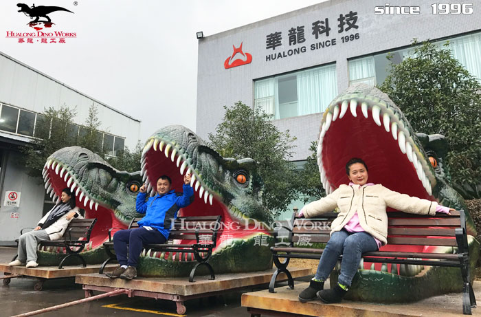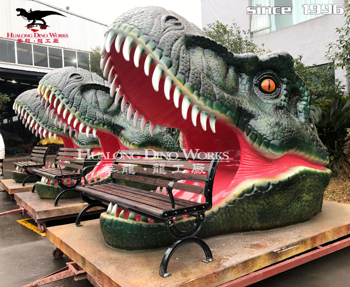 拍照恐龙头座椅-玻璃钢恐龙雕塑厂家