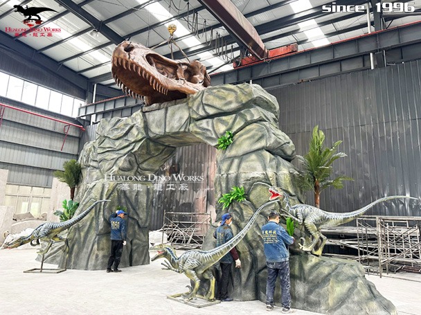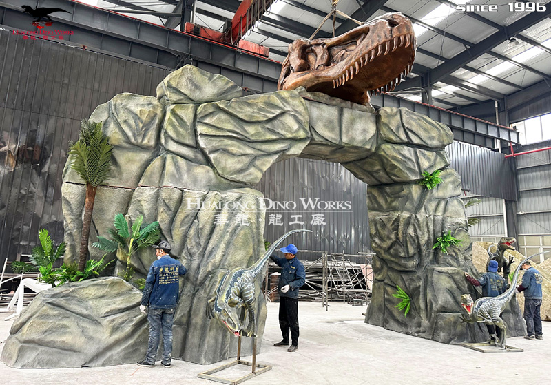 玻璃钢恐龙迎宾大门雕塑