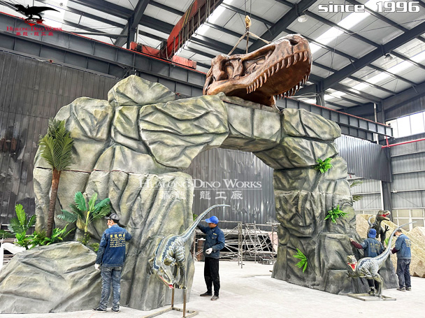 侏罗纪恐龙主题迎宾大门 玻璃钢大门雕塑