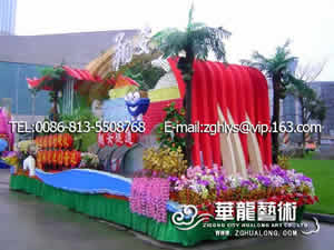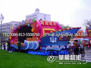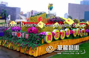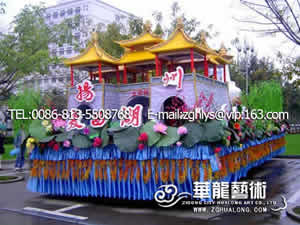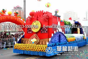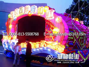 彩灯制作:钢架结构,丝架造型 部分LED 勾边 立体造型 彩色绸缎分色裱糊 美术处理 造型美观绚丽多姿