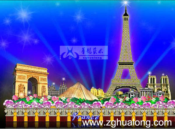 彩灯制作:钢架结构,丝架造型 部分LED 勾边 立体造型 彩色绸缎分色裱糊 美术处理 造型美观绚丽多姿