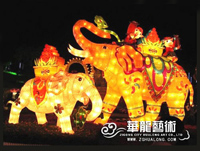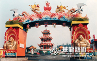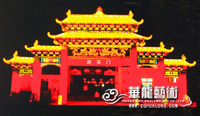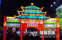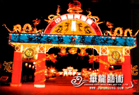 彩灯制作:钢架结构,丝架造型 部分LED 勾边 立体造型 彩色绸缎分色裱糊 美术处理 造型美观绚丽多姿
