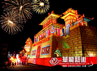 彩灯制作:钢架结构,丝架造型 部分LED 勾边 立体造型 彩色绸缎分色裱糊 美术处理 造型美观绚丽多姿