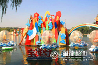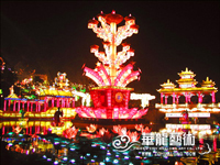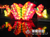 彩灯制作:钢架结构,丝架造型 部分LED 勾边 立体造型 彩色绸缎分色裱糊 美术处理 造型美观绚丽多姿