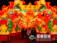 彩灯制作:钢架结构,丝架造型 部分LED 勾边 立体造型 彩色绸缎分色裱糊 美术处理 造型美观绚丽多姿