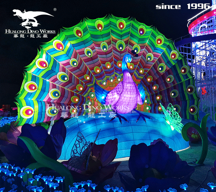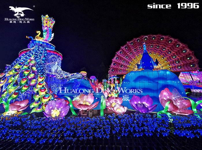 大型凤凰、孔雀主题彩灯灯组、奢华耀眼、光彩夺目