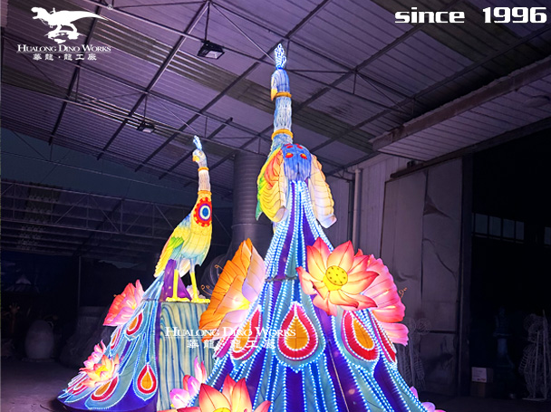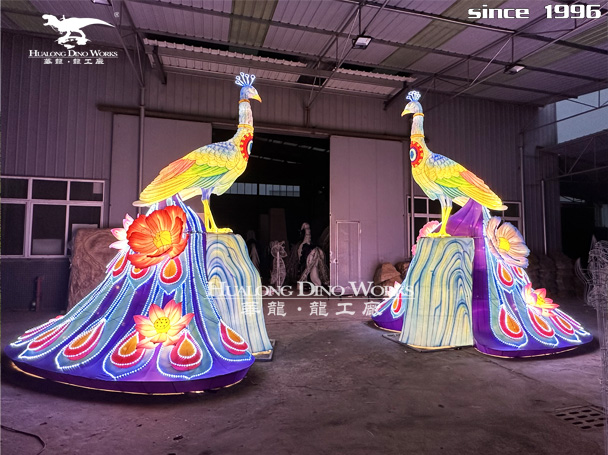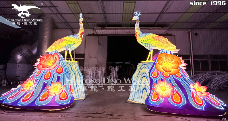 景区户外孔雀迎宾大门花灯 —自贡花灯制作厂家