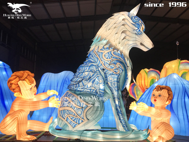 动物彩灯制作:钢架结构,丝架造型 部分LED 勾边 立体造型 彩色绸缎分色裱糊 美术处理 造型美观绚丽多姿