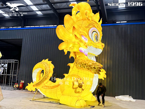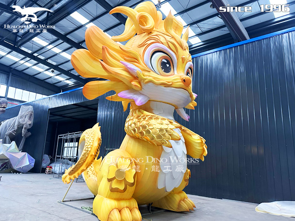 卡通龙花灯制作:钢架结构,丝架造型 部分LED 勾边 立体造型 彩色绸缎分色裱糊 美术处理 造型美观绚丽多姿