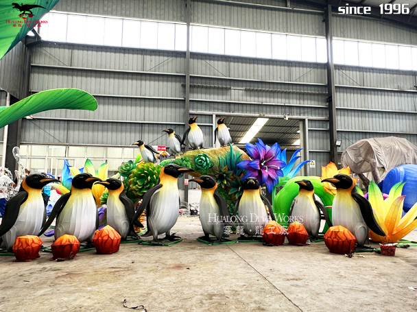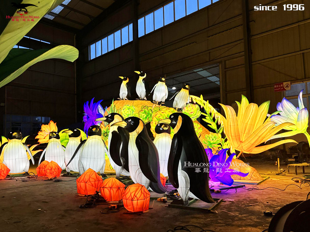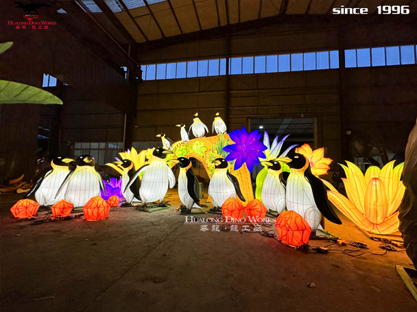 发光企鹅彩灯制作 夜游动物园花灯展