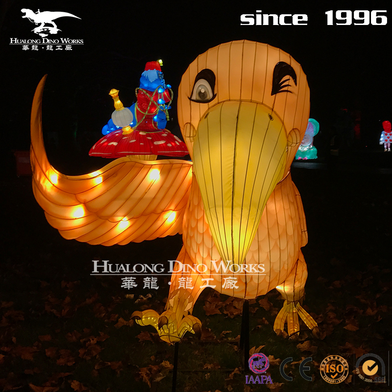 彩灯制作:钢架结构,丝架造型 部分LED 勾边 立体造型 彩色绸缎分色裱糊 美术处理 造型美观绚丽多姿