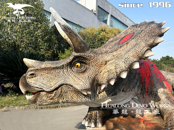 仿真受伤三角龙模型 亲子恐龙主题乐园景观建设