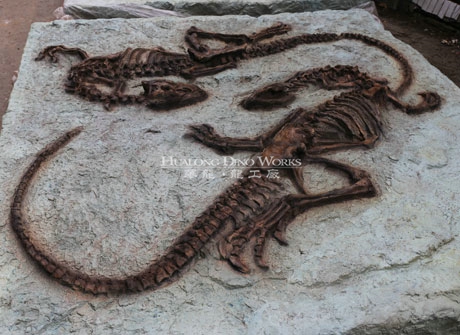 考古挖掘沧龙化石-恐龙骨架化石雕塑
