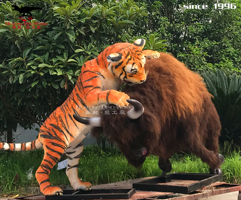 景区户外大型仿真动物打斗组景-仿真野牛 仿真老虎