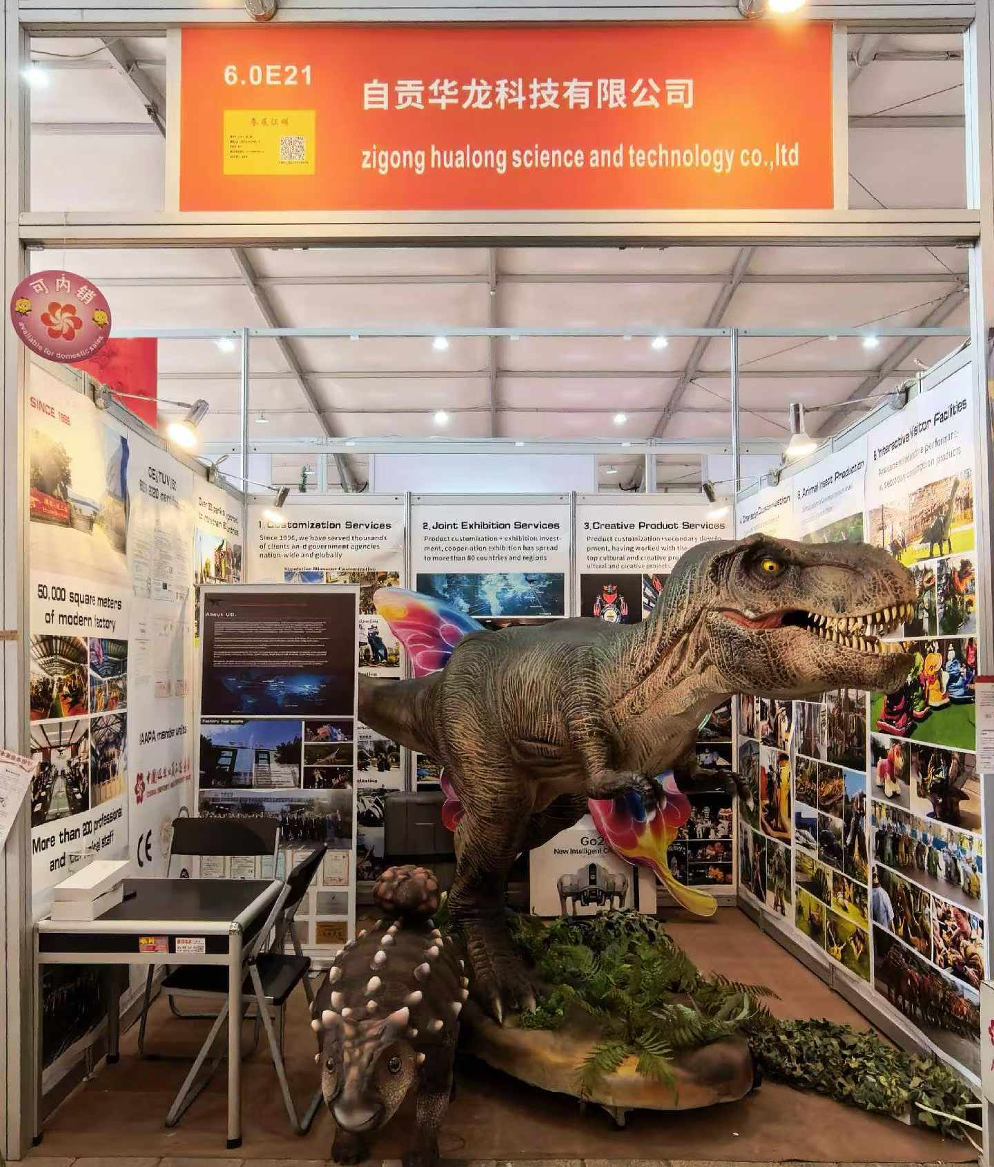 以自贡仿真恐龙产业为例,这一集群已集聚超100家企业,产品占据全球90%以上市场份额,远销90多个国家和地区。华龙科技作为其中的参与者之一,产品出口至80多个国家和地区。在展会上,这类来自自贡的智能仿真产品凭借耐用性好、维护成本低的特点,吸引了不少海外采购商的关注。