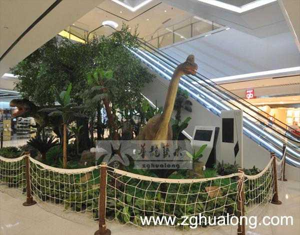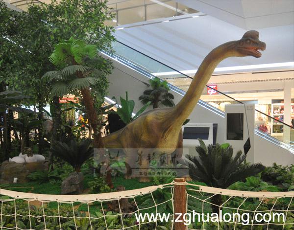 山东济南恒隆广场大型室内恐龙展示-高仿真电动机械活体恐龙模型(腕龙)6米