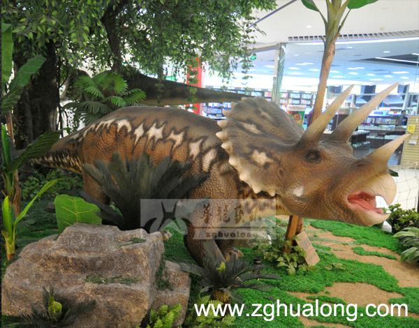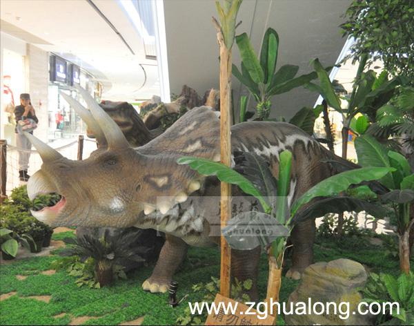 山东济南恒隆广场大型室内恐龙展示-高仿真电动机械活体恐龙模型(三角龙)4米