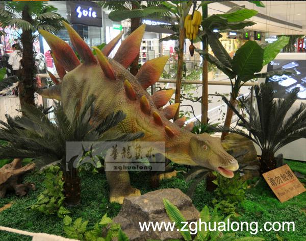 山东济南恒隆广场大型室内恐龙展示-高仿真电动机械活体恐龙模型(剑龙)5米