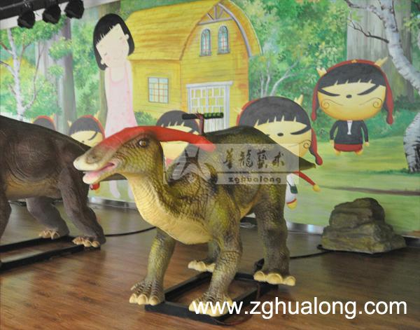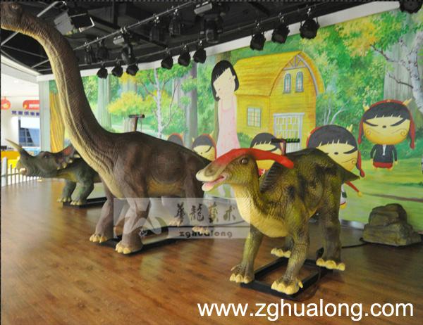 山东济南恒隆广场大型室内恐龙展示-电动机械活体骑乘恐龙模型(副龙栉龙)3米
