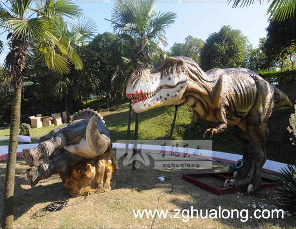 长沙世界之窗恐龙景观展-仿真电动机械活体恐龙模型(霸王龙.三角龙)6米.3米