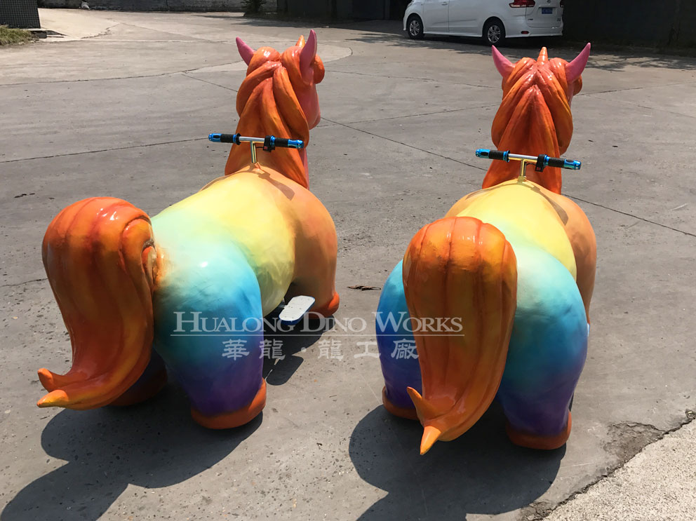 内部采用钢结构造型、直流电机控制动作、表皮采用高密度海绵高弹力纤维布料、手工造型、刻模、外植胶皮、喷涂色彩,产品形象生动、逼真,动作灵活、自然,防水,防冻,抗高温功效