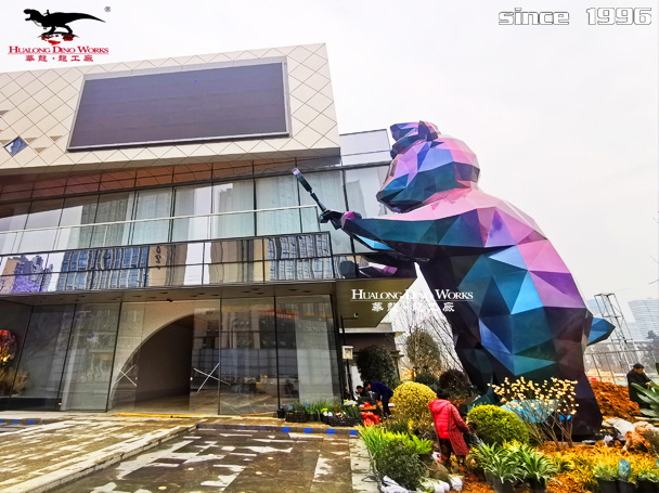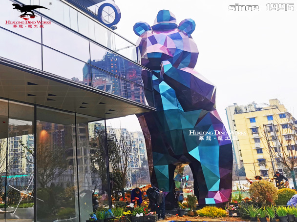 潮玩大型幻彩卡通熊玻璃钢雕塑