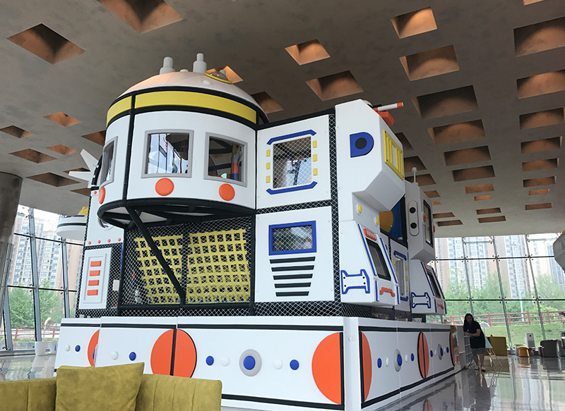 内部采用钢结构支撑、薄板件平台、塑胶件软结构造型,不锈钢标准件、压铸铝件链接、木制件、绳索件。具有耐磨抗腐蚀等特点。