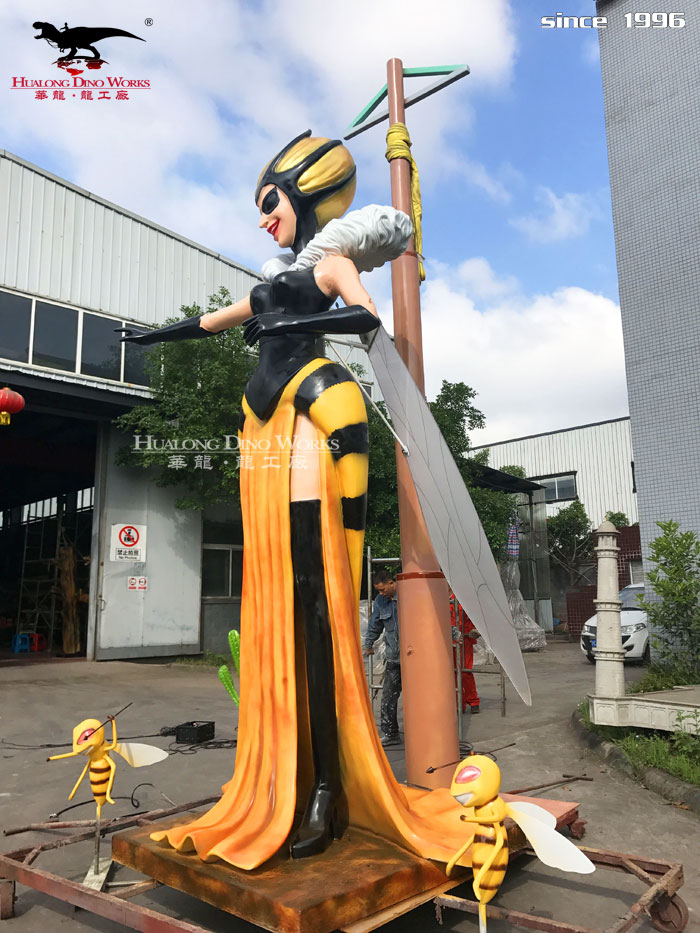 内部采用钢结构造型、直流电机控制动作、表皮采用高密度海绵,手工造型、刻模、外植胶皮、喷涂色彩,产品形象生动、逼真,动作灵活、自然,防水,防火,防冻,抗高温功效。